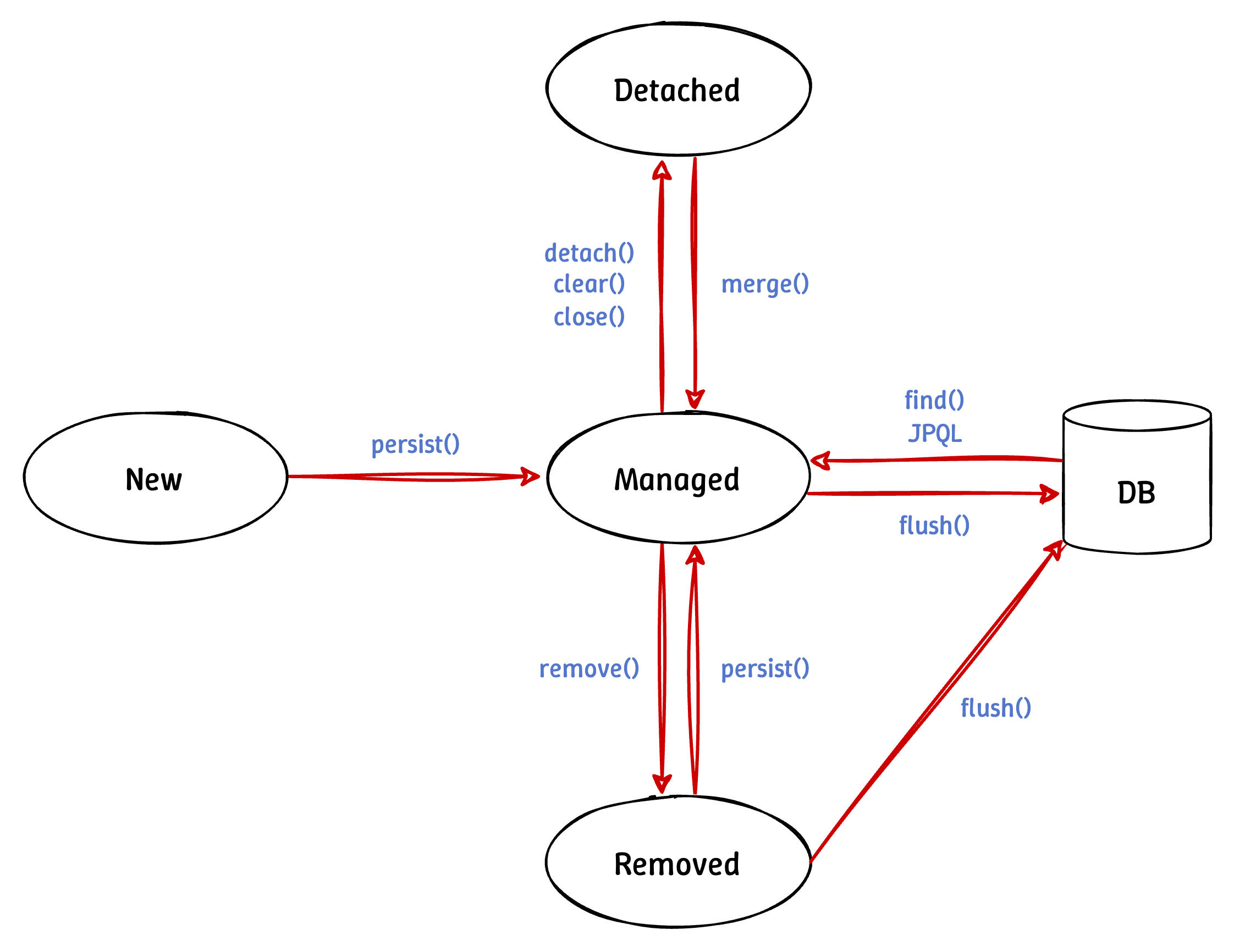 em.persist(),Β em.find(), JPQL 쿼리 κ²°κ³Όλ‘ μμ μνκ° λ©λλ€.