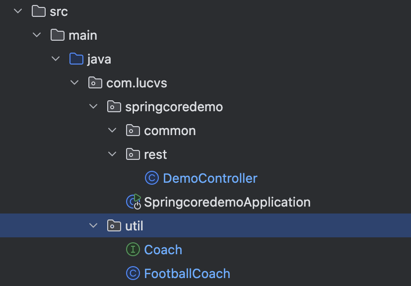 위에서 @ComponentScan 을 통한 Component Scanning 은 기본적으로 Main Spring Boot Application 이 존재하는 package 에만 국한된다고 말했다. 그러나 현재 위의 상황에서는, com.lucvs.util 이라는 다른 package 에만 @Component annotation 이 사용된 class 들이 존재하고 있다.
