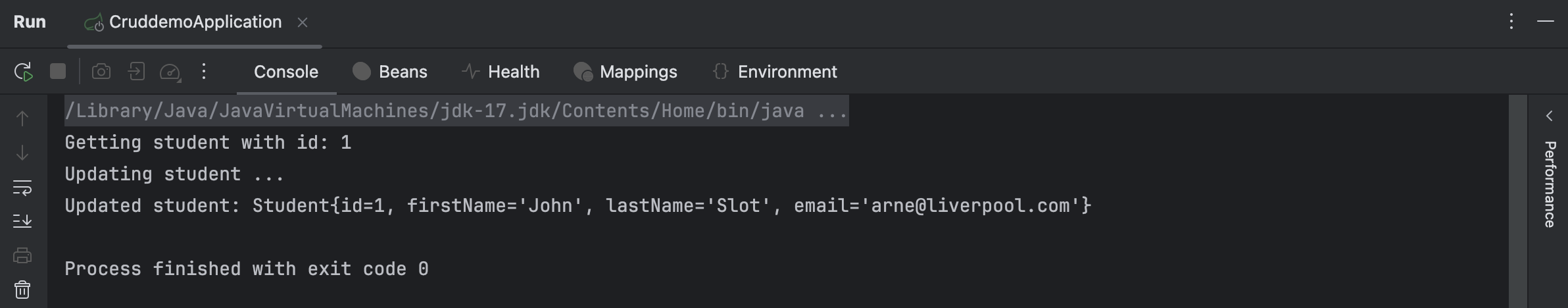 하나의 Student object 에 대하여 JPA 를 사용해 FirstName 을 update 하는 방법은 다음과 같다.