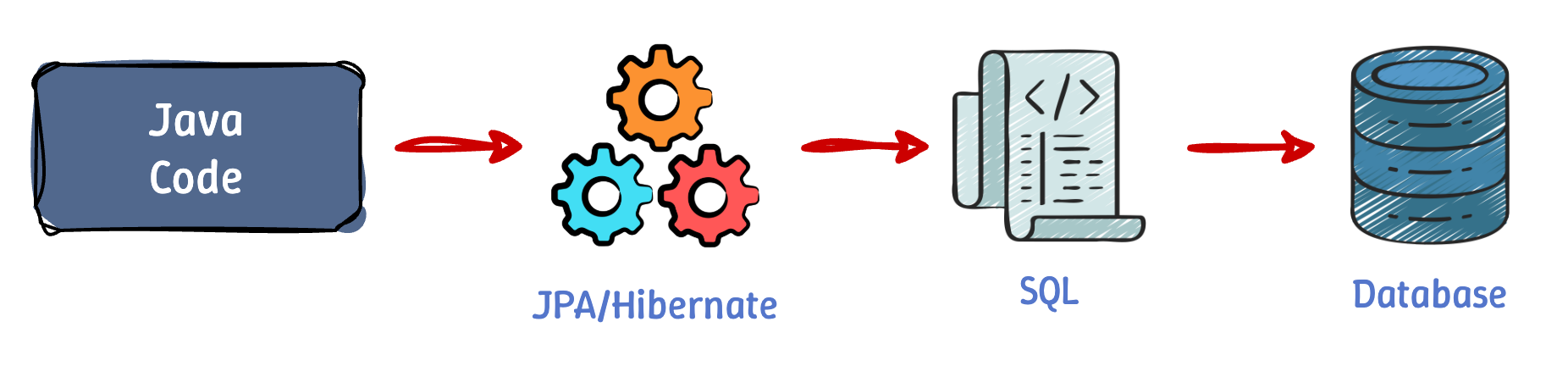 Annotation 을 사용하여 Java Code 를 작성하고, JPA/Hibernate 환경에서 실행하면 SQL 로 변환되어 실제 Database 에 적용된다.