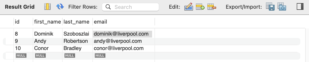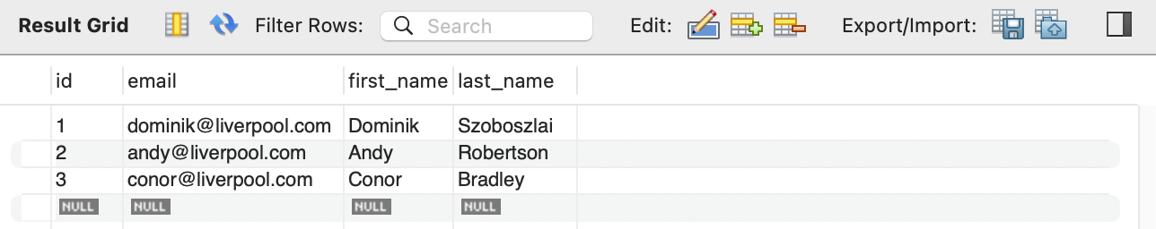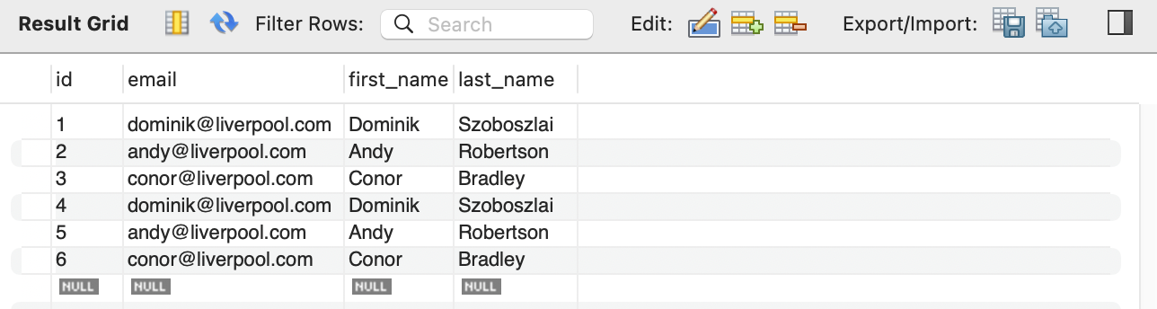 실제 Database Table 에는 위와 같이 id 가 1 부터 시작하여, 기존 table 의 data 가 완전히 삭제되고 새로 생긴 것을 볼 수 있다.