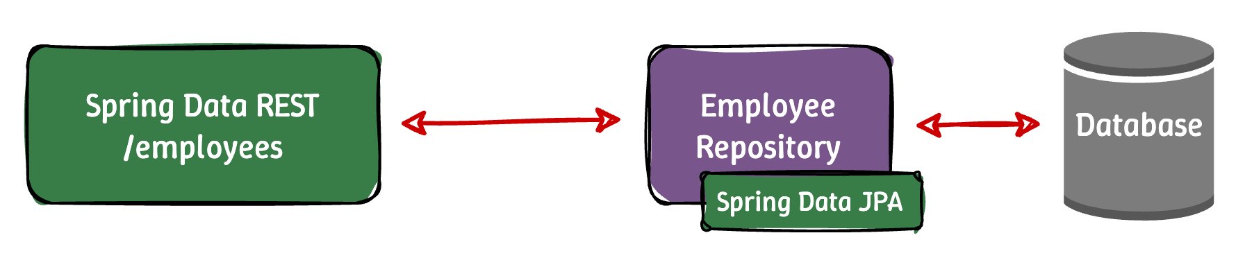 Spring Boot 가 실행되면, Spring Data REST 가 JPA Repository interface 를 스캔하여 자동으로 REST Controller 를 Proxy 형태로 생성한다.