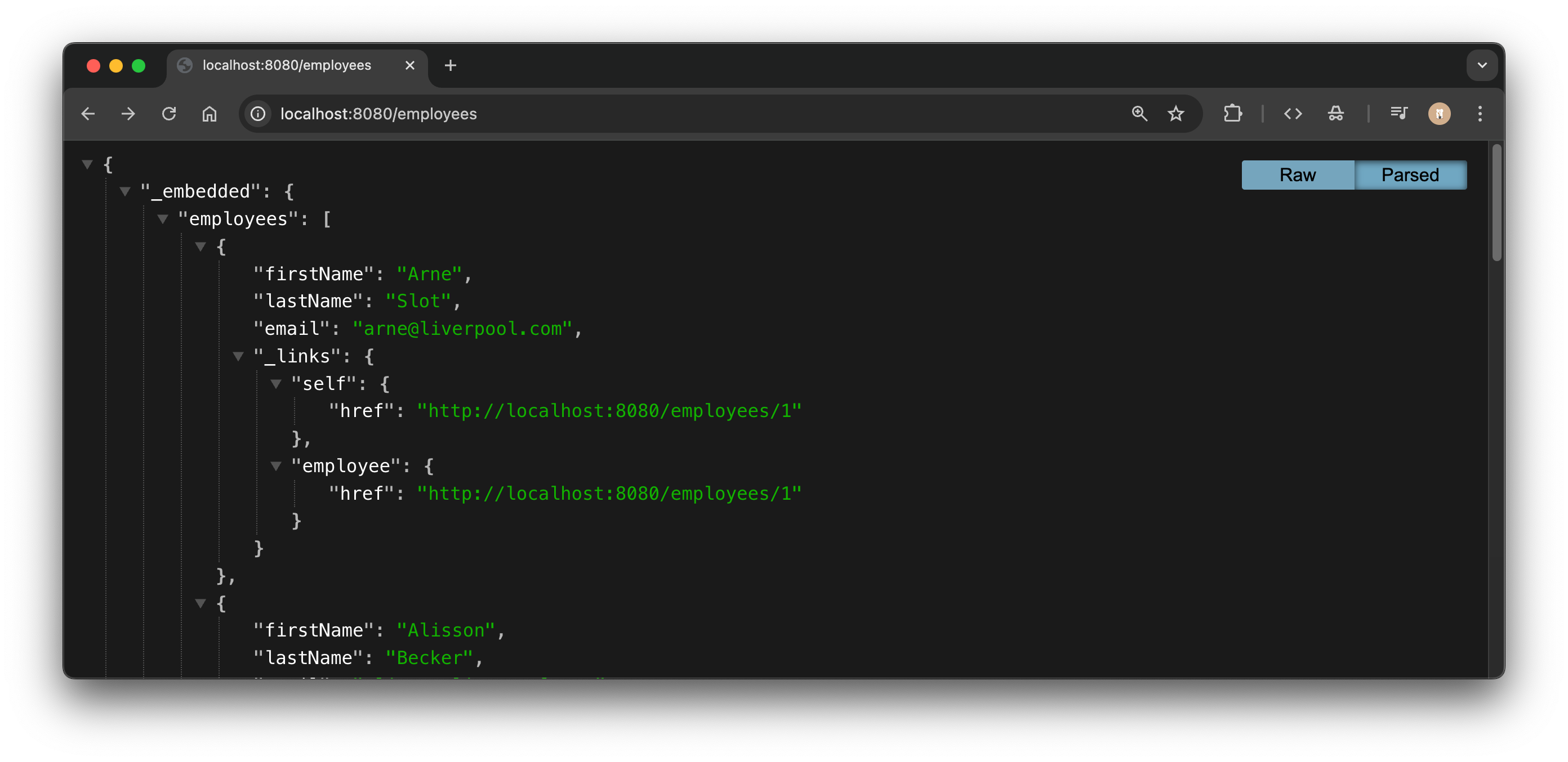 사용 방법은 더 간단하다. 단순히 Maven POM file 에 spring-boot-starter-data-rest 를 추가해주면 끝이다. 더 이상의 code 는 필요하지 않다.