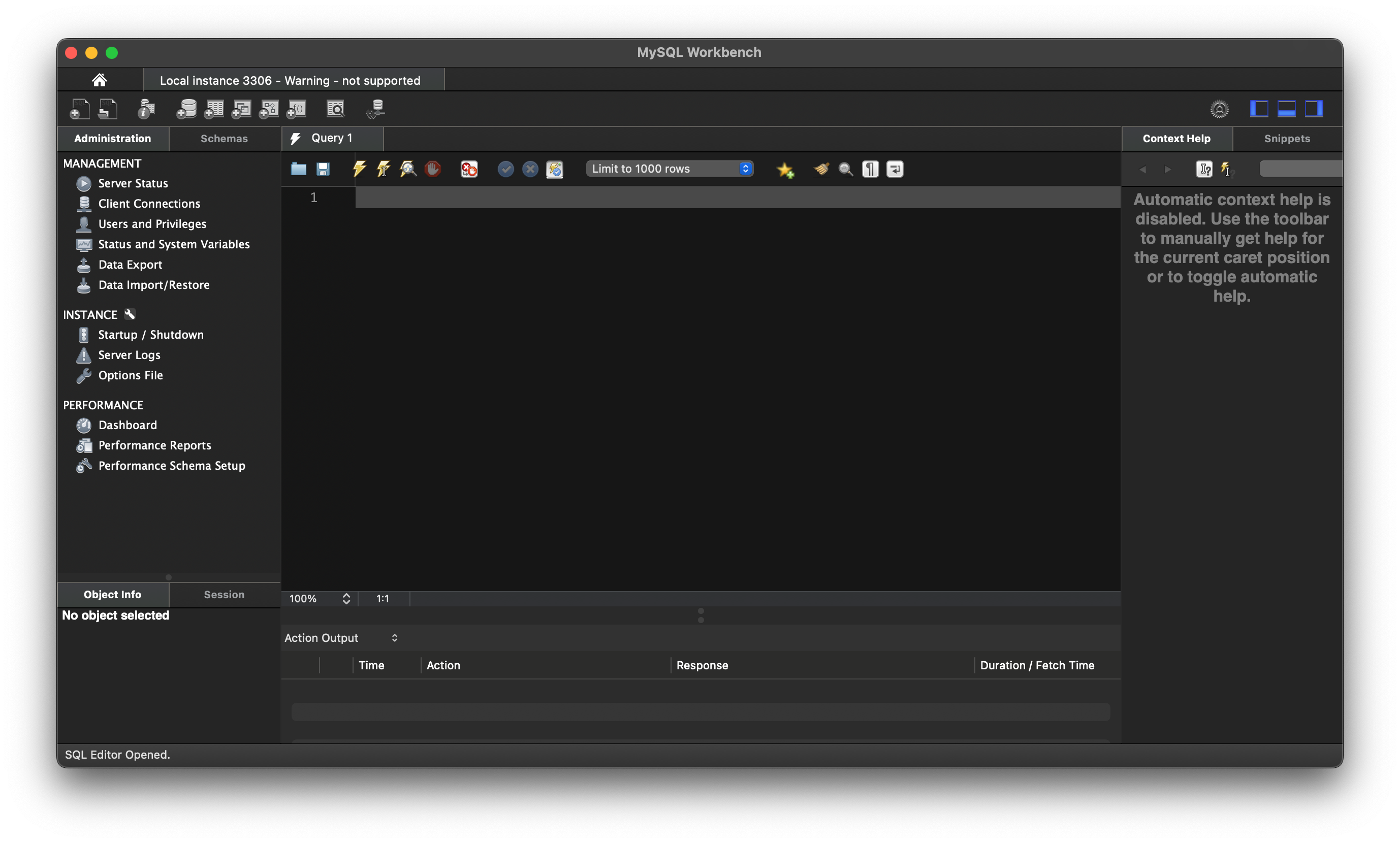 우선 Workbench 에서 Local instance 에 접속한 뒤, 다음 SQL 코드를 실행한다.